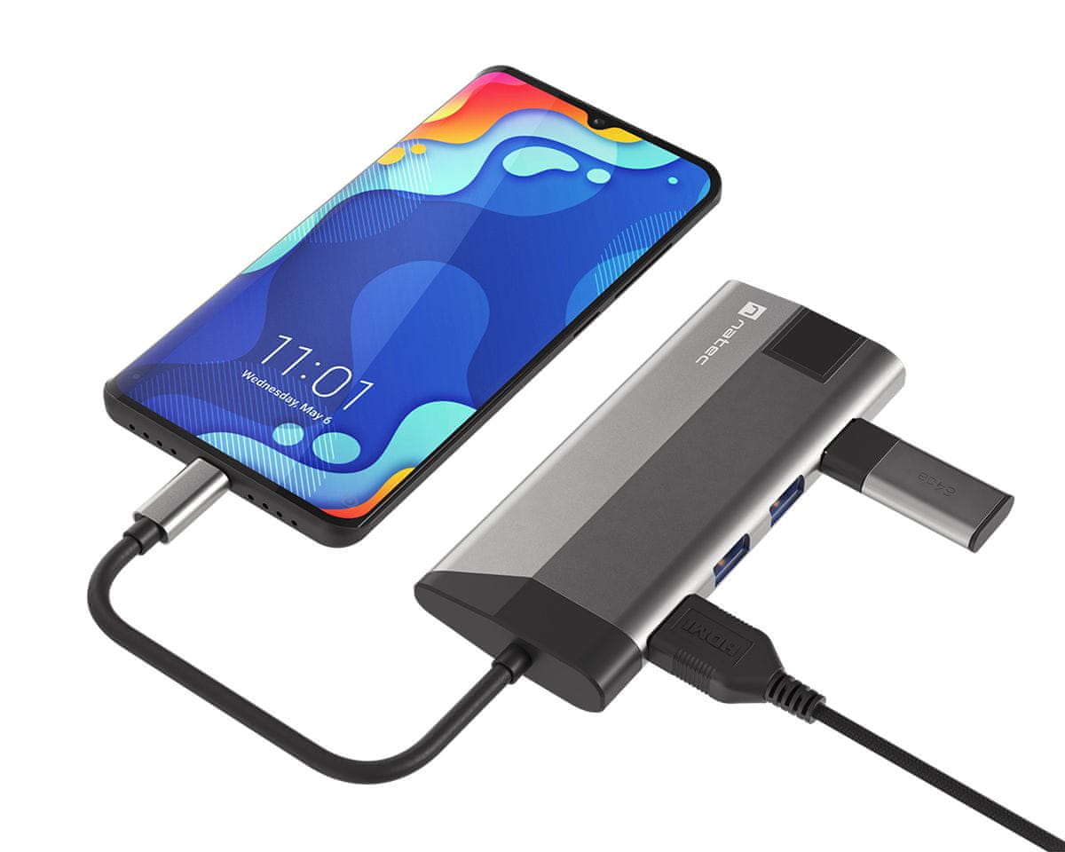 Natec Fowler Plus USB hub, 3x USB-A, HDMI, Ethernet, USB-C, microSD (USB-HUB-NAT-FOWLER-PLUS)
