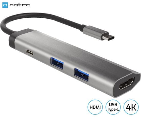 Natec Fowler Slim USB hub, 2x USB, USB-C, HDMI (USB-HUB-NAT-FOWLER-SLIM)