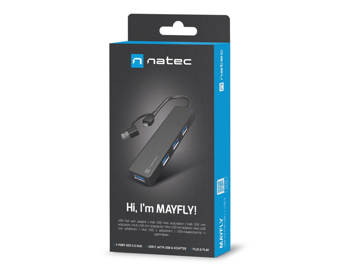 Tražite li kompaktan i funkcionalan USB HUB, koji će vam omogućiti korištenje nekoliko dodataka? Upoznajte Natec Mayfly – USB HUB s 4 USB-A 3.0 ulaza i adapterom koji će ga spojiti i na USB Type-C i na klasični USB Type A konektor. Mala veličina, velika brzina prijenosa podataka i spreman za rad bez nepotrebnih drivera – ovo je Natec Mayfly.