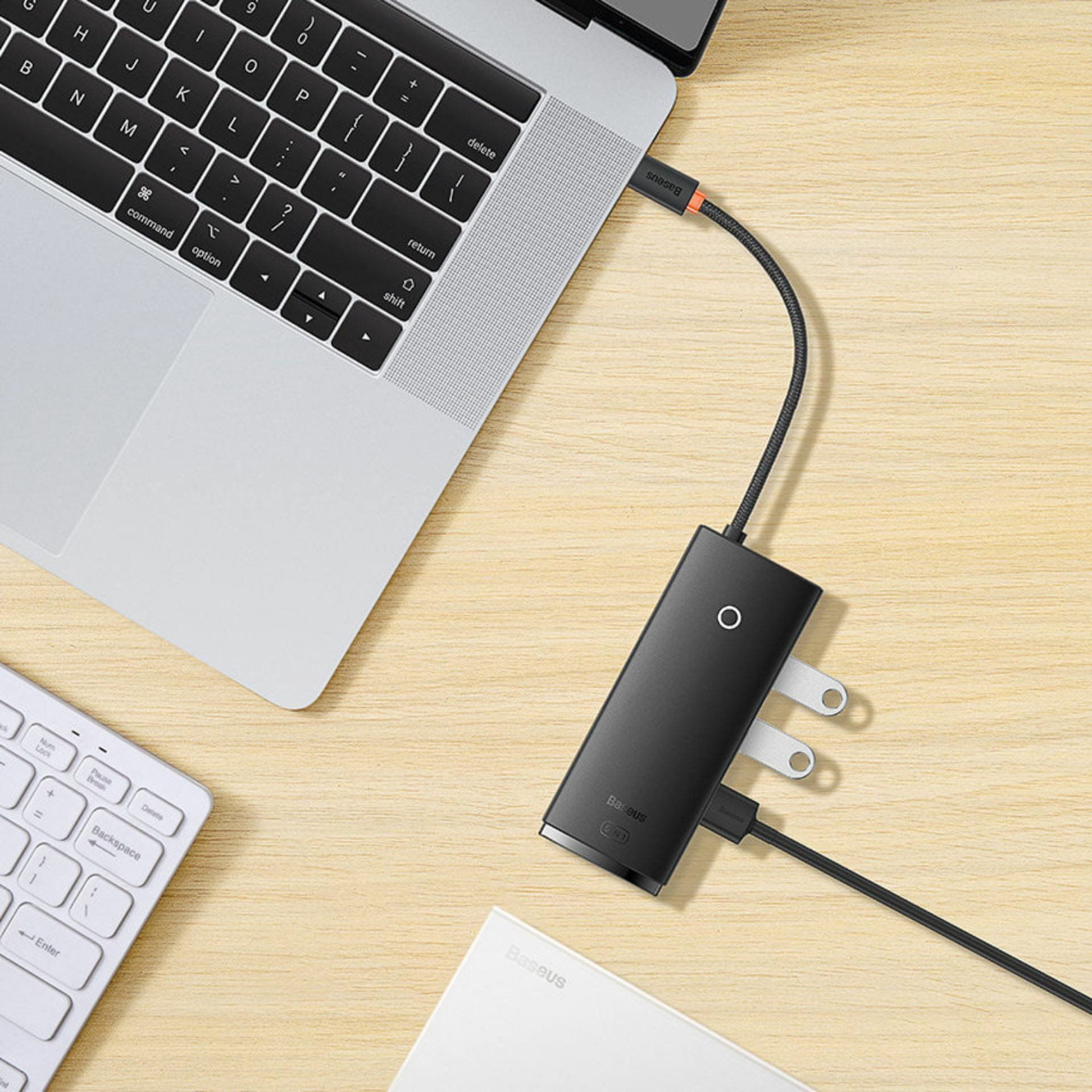 Baseus priklopna stanica 3.1 TipC 5v1 WKQX040001 povećava broj mogućih priključaka za vaš uređaj korištenjem USB Tip C priključka. Nudi 3× USB 3.0 priključka, jedan HDMI video priključak s 4K 30Hz rezolucijom te jedan USB tipa C priključak. Priklopna stanica opremljena je dodatnim gumbom koji omogućava zaustavljanje prijenosa slike preko HDMI priključka. Baseus priklopna stanica izrađena je od ABS materijala, što osigurava sigurnost stanice i svim uređajima priključenim na nju, od mogućih opasnosti kratkog spoja.