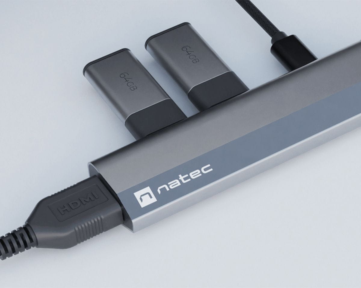 Natec Fowler Slim USB hub, 2x USB, USB-C, HDMI (USB-HUB-NAT-FOWLER-SLIM)
