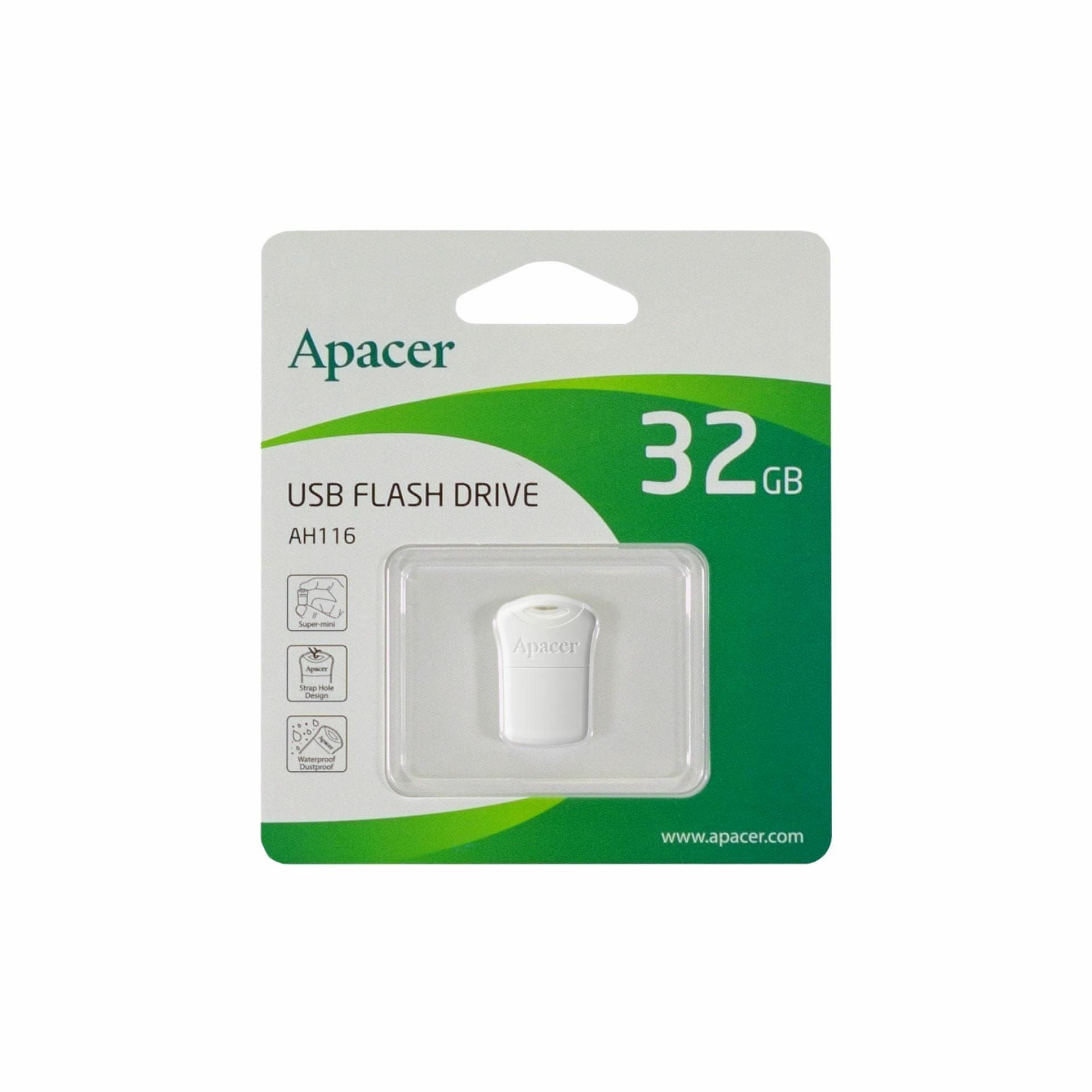 Apacer AH116 USB stick, 32 GB, super mini, bijela