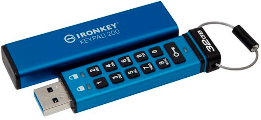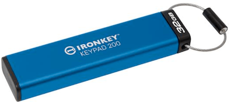 Kingston Ironkey USB disk, 32 GB, Keypad 200, 3.2 Gen1, FIPS 140-3Lvl 3, AES-256, plava (IKKP200/32GB)