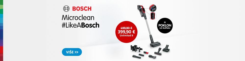 Bosch Unlimited 9 ručni usisavač detektira i najsitnije čestice koje lete, a MicroClean prsten pokazuje jesu li usisane površine čiste ili ne. Zahvaljujući brojnim dodacima, možete očistiti sve vrste prljavštine, od poda do stropa – čak iu vašem automobilu. LED zaslon pruža poboljšano korisničko iskustvo uz potpunu kontrolu nad uređajem.