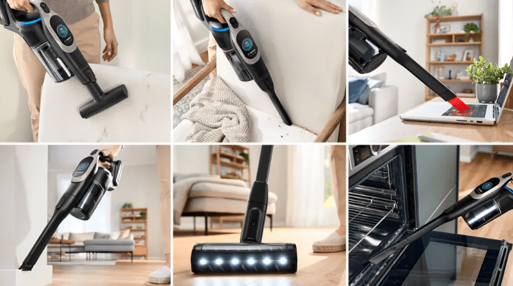 - MicroClean tehnologija: MicroClean senzor detektira i najmanje čestice koje prolete, a MicroClean prsten pokazuje jesu li usisane površine čiste ili ne.