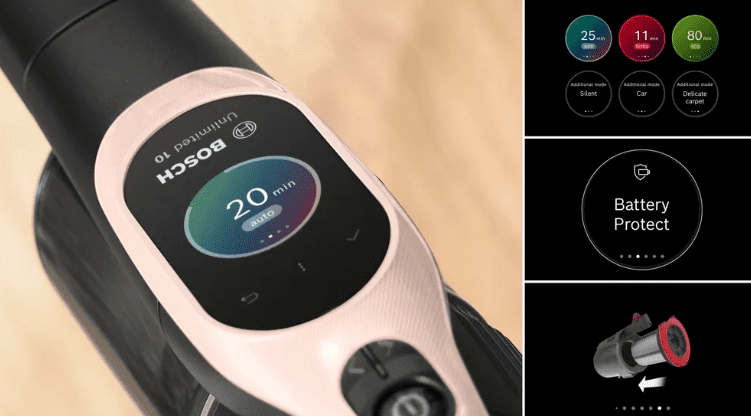 - MicroClean tehnologija: MicroClean senzor detektira i najmanje čestice koje prolete, a MicroClean prsten pokazuje jesu li usisane površine čiste ili ne.