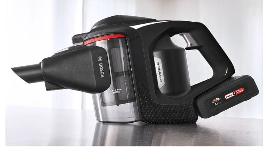 Bosch uspravni baterijski usisavač može se pohvaliti snažnim motorom za temeljito čišćenje doma. TurboSpin motor bez četkica radi na 82.000 o/min za zapanjujuće rezultate čišćenja svaki put. Opremljen je s dvije izmjenjive baterije, koje uvelike produljuju vrijeme korištenja. Dok punite jednu bateriju, drugu možete koristiti za usisavanje kuće. Zahvaljujući brzom punjenju, baterija će ponovno biti spremna za korištenje u trenu. Baterija generacije Power Plus Bosch pruža povećanu učinkovitost i duže vrijeme rada. Osim toga, baterija impresionira svojom svestranom upotrebom jer je kompatibilna s mnogim električnim alatima s naponom od 18 V, uključujući i one drugih marki. Praktična veličina usisavača i set nastavaka omogućuju vam, da jednim uređajem usisate cijeli dom pa čak i vozilo. Spremnik za prašinu može se jednostavno ukloniti i isprazniti, a filtar se može očistiti bez pranja. Praktično skladištenje i punjenje osigurava zidna priključna stanica, koja nudi i mjesto za spremanje dodataka.