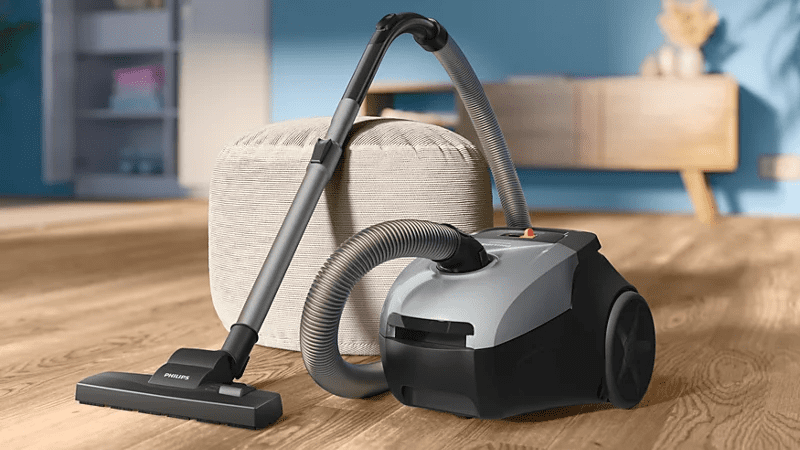 Usisavač s vrećicom je snažan, kompaktan i učinkovit, dizajniran za temeljito čišćenje svih vrsta podova. S motorom od 800 W osigurava iznimnu snagu usisavanja koja učinkovito uklanja prašinu s tvrdih podova i tepiha, jamčeći svjež i čist dom.