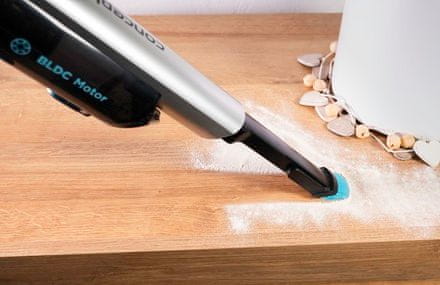 Dodaci ručnog usisavača VP4430 uključuju posebnu mlaznicu 2 u 1, koja je kombinacija mlaznice za uske pukotine i četke za prašinu. Možete ga koristiti kao zasebnu mlaznicu za uske prostore za čišćenje teško dostupnih mjesta (radijatori, ladice, prostor između madraca i presvlaka itd.) ili pričvrstiti četku za prašinu i nježno ukloniti prašinu s namještaja, roleta, prozorskih klupčica, knjiga ili tipkovnica.