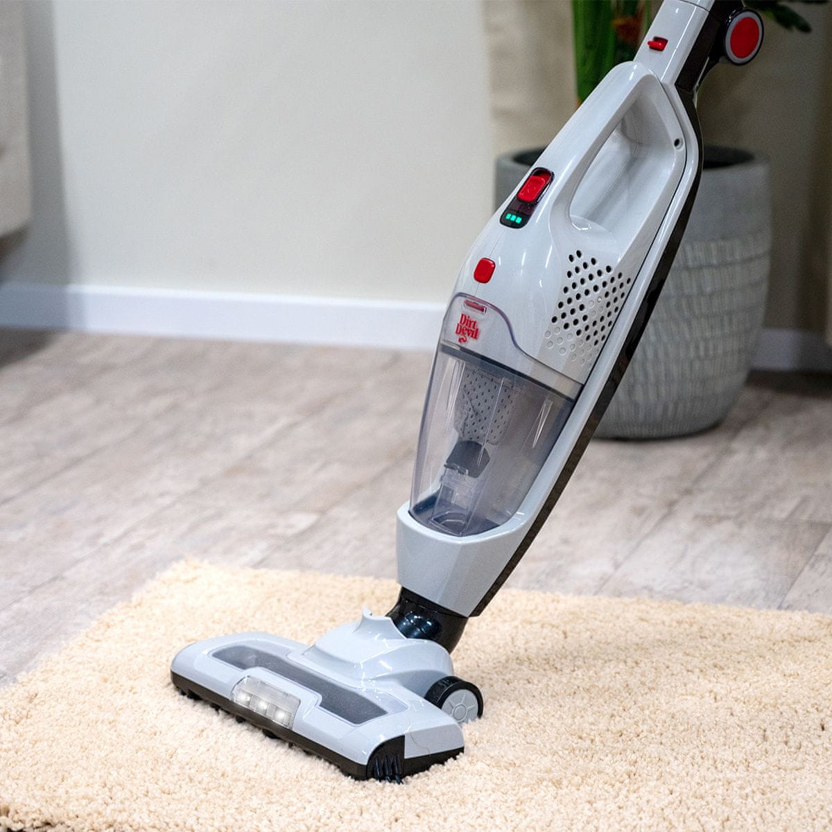 DIRT DEVIL DD9007 2u1 uspravni i ručni usisavač savršen je usisavač za sve poslove! Bežični usisavač može se koristiti kao štapni usisavač za jednostavno i brzo čišćenje raznih vrsta podova. Glavni dio usisavača može se koristiti i kao ručni usisavač za čišćenje malih kutova, namještaja, pa čak i unutrašnjosti automobila. Potpuno se puni za 3,5 sata i ima vrijeme rada do 38 minuta s jednim punjenjem. Kada se ne koristi, usisavač se može sklopiti i pohraniti uspravno ili postaviti na priloženi zidni nosač.