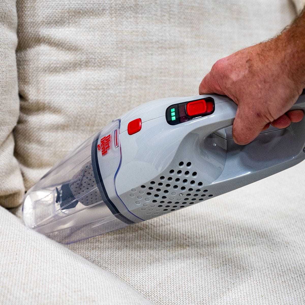 Osim što je bežični, usisavač Dirt Devil je i usisavač BEZ VREĆICE. Sva prašina i prljavština završavaju izravno u namjenskoj spremniku/kabini za prašinu, koja ima kapacitet od 500 ml. Nakon upotrebe, uklonjivu posudu usisavača Dirt Devil možete jednostavno isprazniti iznad kante za prašinu ili kante za otpad. Budući da nema vrećice, dolazite u kontakt s manje prašine, što bežični usisavač čini idealnim za osobe s alergijama, uključujući alergije na prašinu. Filter prije spremnika za prašinu može se lako ukloniti iz usisavača radi čišćenja. Zahvaljujući ovom filteru sprječavate da veći komadi prljavštine, poput stakla, završe u usisavaču i oštete ga.