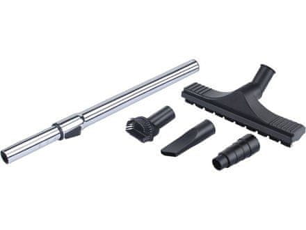 Multifunkční univerzální vysavač s nerezovou nádobou na odpad je určen k suchému a mokrému vysávání hrubých nečistot, které nejsou vhodné pro vysávání vysavačem určeným pro úklid domácností, jako např. piliny v domácí dílně nebo kousky omítky nebo malé množství tekutin. Vynikající funkcí je možnost vyčistit filtr jen opakovaným stiskem tlačítka na těle vysavače, což Vám ušetří čas při práci. Vysavač je také vybaven elektrickou zásuvkou na těle vysavače, do které si můžete zapojit nářadí a poté tímto nářadím vzdáleně zapínat a vypínat vysavač. Takže vysavač bude v provozu jen pokud budete mít zapnuté připojené nářadí a nebude běžet naprázdno. Pro vysávání běžných materiálů (piliny, omítka, prach…) stačí použít bezsáčkový HEPA filtr, ale při vysávání velmi jemného prachu je vhodné použít spolu s filtrem HEPA i filtrační sáčky, které zvýší filtrační výkon vysavače, zabrání úniku prachu do okolí a sníží zanášení filtru při práci. Příslušenství obsahuje klasické nástavce na vysavač: univerzální podlahová hubice, štěrbinová hubice, kartáčová hubice a univerzální adaptér pro připojení hadice do strojů s otvory o různých průměrech.