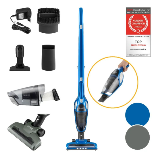 First Austria Sisavac uspravno prvo, 6kpa, 120w, 2v1, ciklon, sivo-plavi