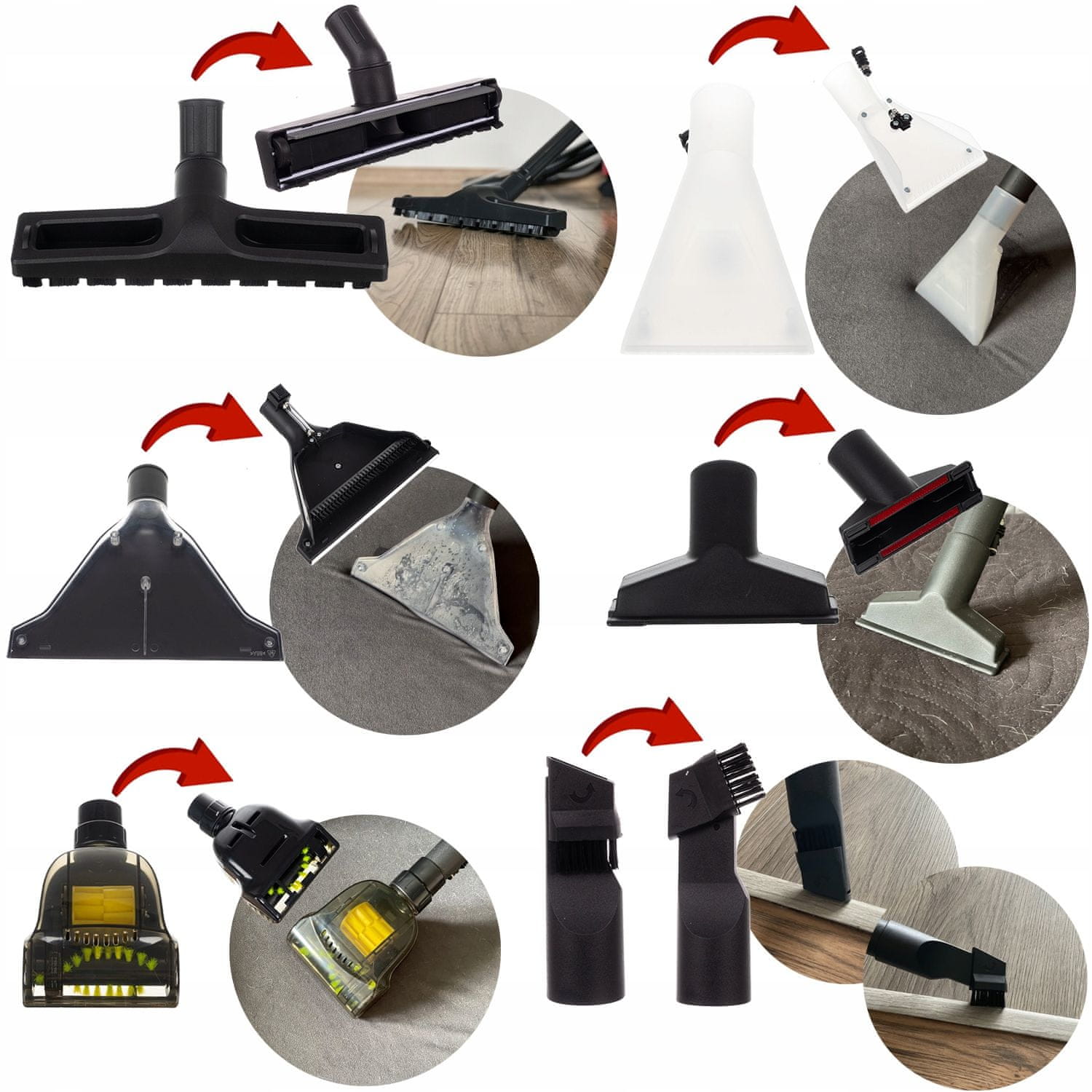 - KAKO RADI USISAVAČ? – ima sustav s dva spremnika. U jednu ulijte vodu i deterdžent, a druga se automatski puni korištenom i prljavom vodom. Posuda za deterdžent je zapremine 3,5 litara, a posuda za prljavu vodu nakon pranja 20 litara. U kompletu se nalazi 6 savjeta! Turbo vrh za čišćenje podova dizajniran je za čišćenje glatkih površina i tepiha, uklanjanje tvrdokorne prljavštine poput životinjske dlake zahvaljujući rotirajućem cilindru sa sintetičkim elementima za sakupljanje. Uska mlaznica s pomičnim vrhom savršena je, na primjer, za čišćenje kutova sofe, letvica, stropova i drugih kutova. Mali T-vrh, savršen za usisavanje tepiha, tepiha i tapeciranog namještaja. Mlaznica za čišćenje s raspršivačem vode, vrhom za prskanje i četkom za pod.