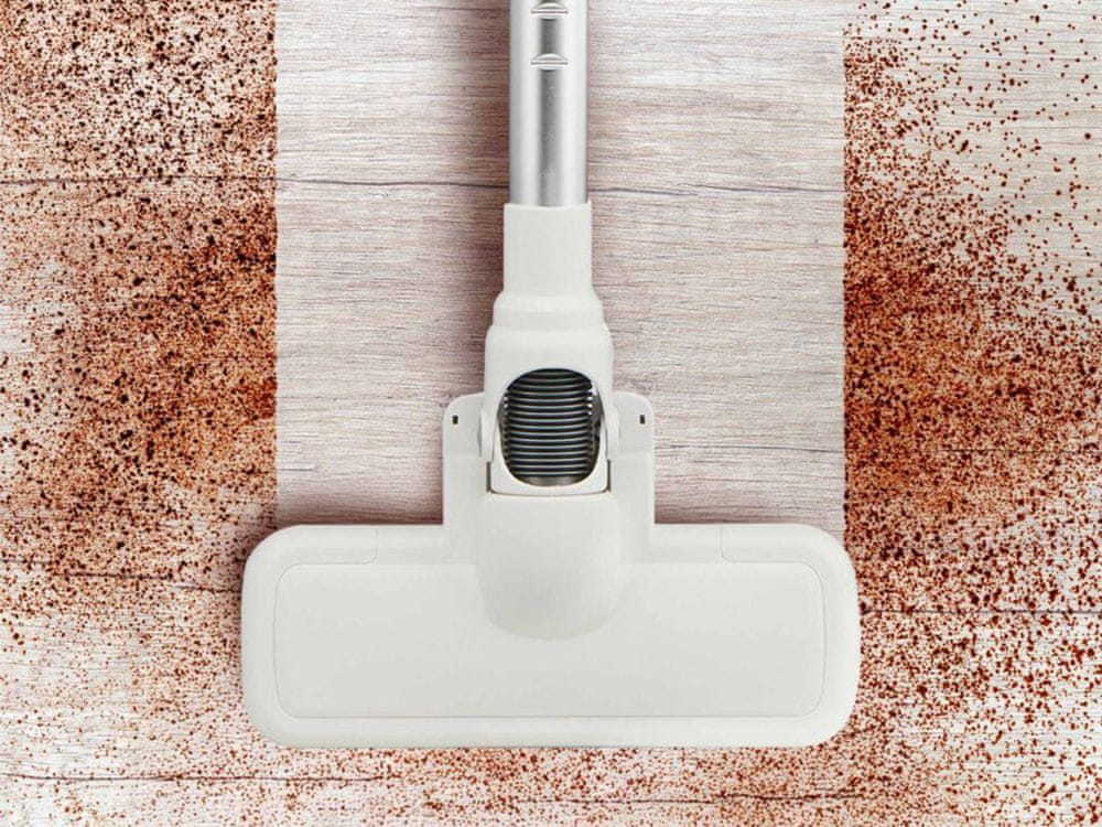 Usisavač je opremljen univerzalnom četkom za pod koja je, zahvaljujući svojoj maloj visini od samo 2,5 cm i rasponu pokreta od 270 stupnjeva, savršena za usisavanje ispod namještaja. Četka lako klizi ispod kreveta, sofa i ormara, osiguravajući temeljito čišćenje čak i na najteže dostupnim mjestima. Ovo rješenje povećava udobnost i učinkovitost čišćenja u svakom domu.