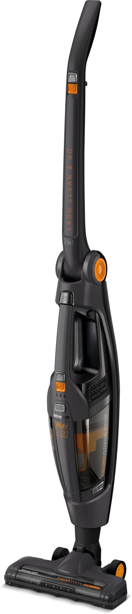 Usisavač 2 u 1 s odvojivom ručnom jedinicom. SENCOR SVC 8825TI opremljen je HEPA ciklonskim filtarskim sustavom i visoko učinkovitom Li-Ion baterijom, koja osigurava energiju za do 55 minuta rada. Lagani i tihi dizajn nudi brzo i jednostavno rješenje za dnevno čišćenje.