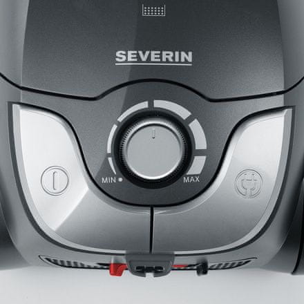SEVERIN BC 7055 usisavač za pod u energetskoj klasi A, ukupnog volumena 4 l. Ovaj usisavač koristi 6-stupanjsku filtraciju. Ima preklopivu podnu mlaznicu, dodatnu XL podnu mlaznicu za parket, Ergo-Soft ručku s brzim otpuštanjem i tri gumena kotačića prilagođena podu.