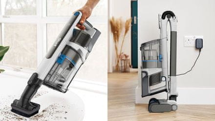 Ovaj 2-u-1 štapni usisavač moderno je i fleksibilno rješenje za čišćenje cijelog doma. Nudi kombinaciju snažne usisne snage, praktične fleksibilne cijevi Flexology, dugog vijeka trajanja baterije i naprednih značajki za lakše održavanje. Zahvaljujući PowerFins tehnologiji i sustavu protiv omotavanja dlaka, može učinkovito usisavati različite vrste površina bez da se dlake omotaju oko četke.