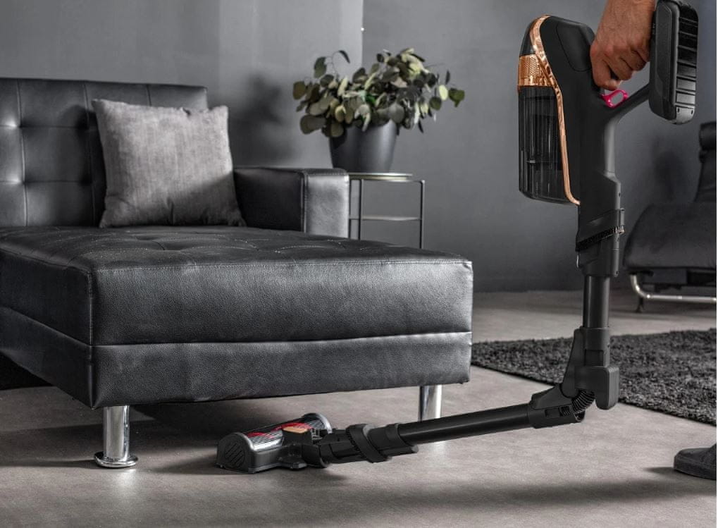 Bežični štapni usisavač je uvijek pri ruci i nadopunjen, sa svim nastavcima, koji su vam potrebni. Nadalje, za dodatni nastavak; recimo za usisavanje stropa, dostupno je crijevo za produženje usisavača.