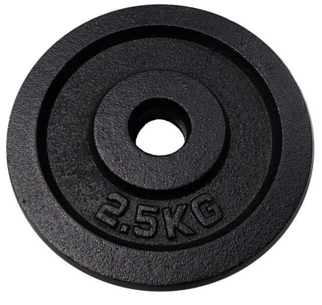Disk za utege 1 × 2,5 kg, s otvorom za šipku promjera 30 mm. Vanjski promjer diska je 16 cm, širina diska je 2,5 cm.