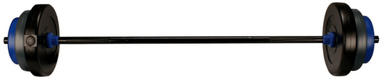 Šipka za podizanje utega Avenio duljine 136 cm, mase 2 kg. Priloženi su diskovi, ukupne mase 18 kg. Cijeli opis