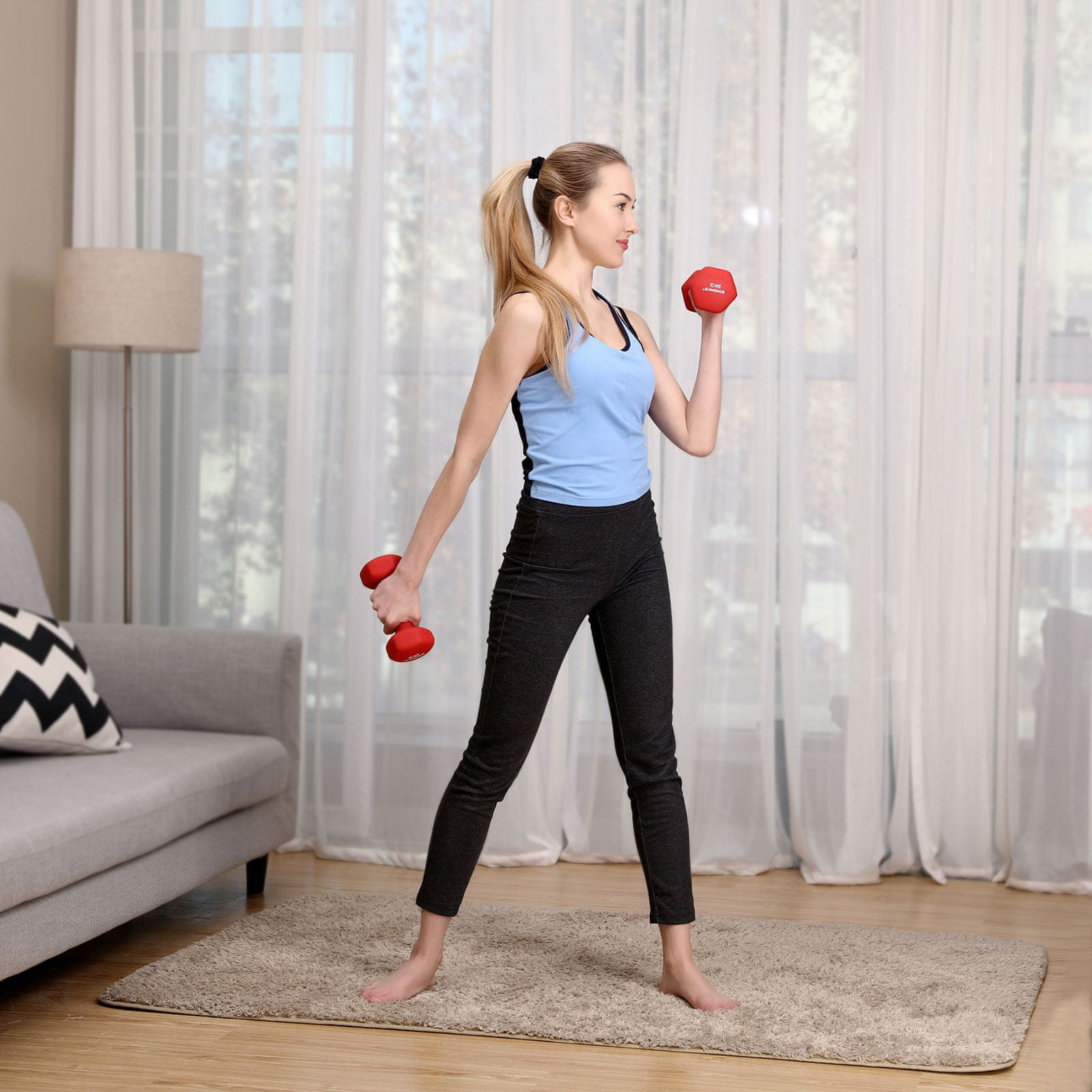 Ovaj set bučica idealan je za svestrani trening snage kod kuće. Kompaktan i jednostavan za pohranu, pomaže vam u izvođenju različitih vježbi za poboljšanje tonusa mišića i opće kondicije. Savršen za učinkovite treninge u bilo kojem prostoru.
