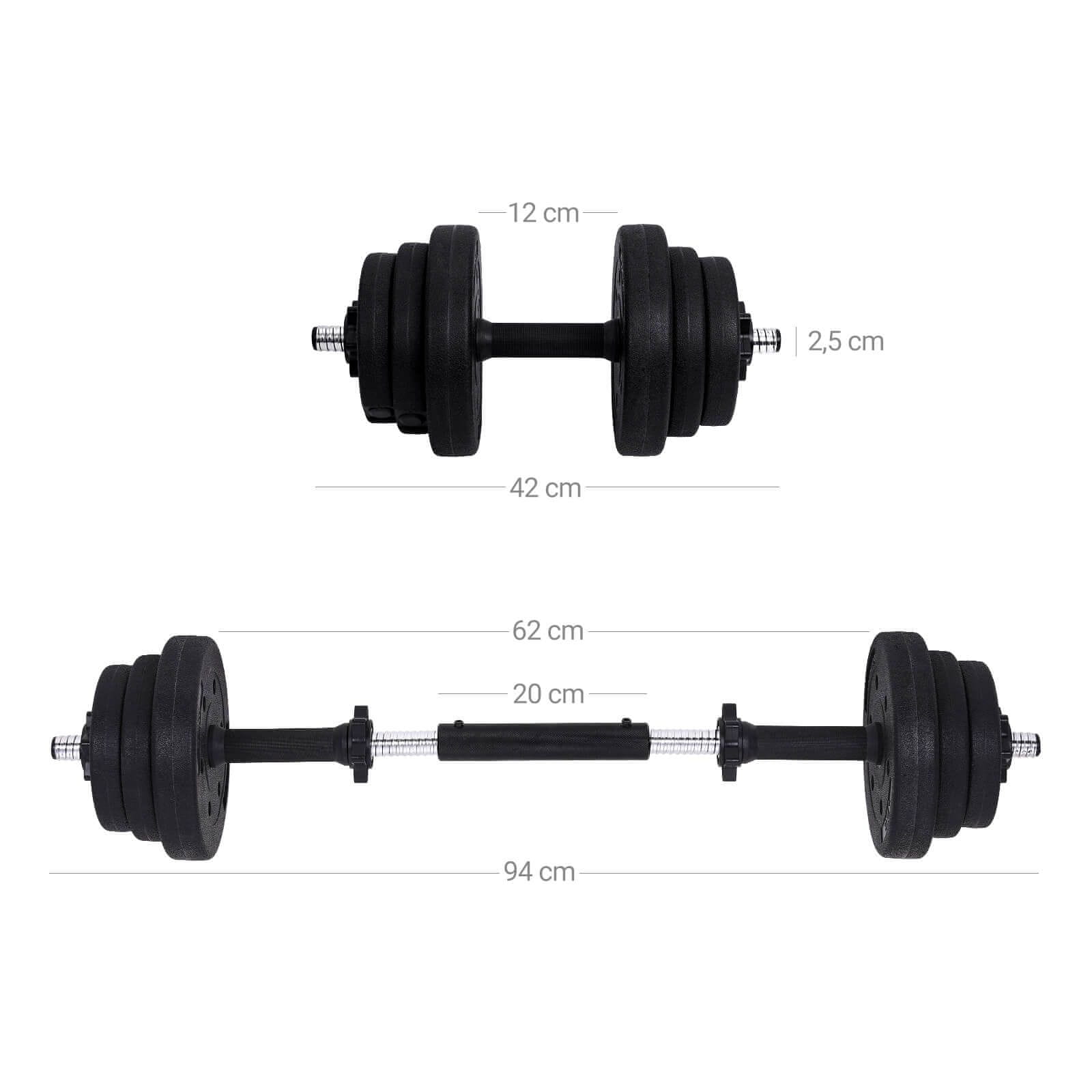 Songmics Set bučica 2 u 1 podesiv s šipkom za utege 50x21.5x21.5 cm crna