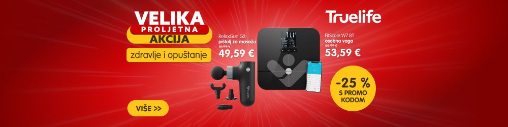 Osobna vaga s mjernim rasponom od 0 do 150 kg i preciznošću 100 g ima staklenu platformu veličine 30×30 cm, digitalni LCD zaslon i automatsko uključivanje/isključivanje.