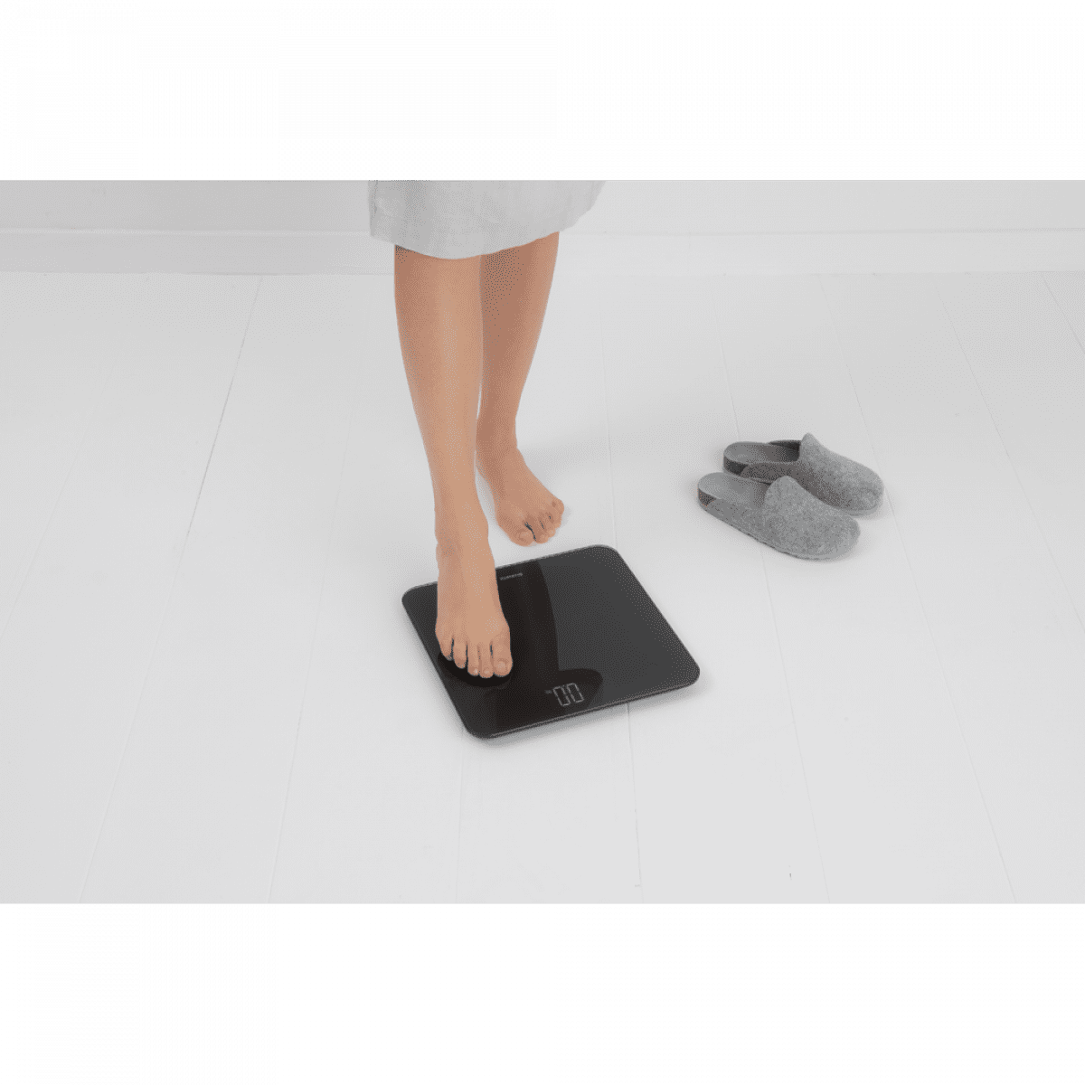 Osobna vaga Brabantia ima LCD zaslon i funkciju automatskog uključivanja i isključivanja. Njezina nosivost je 180 kg. Mjeri s točnošću 100 g.