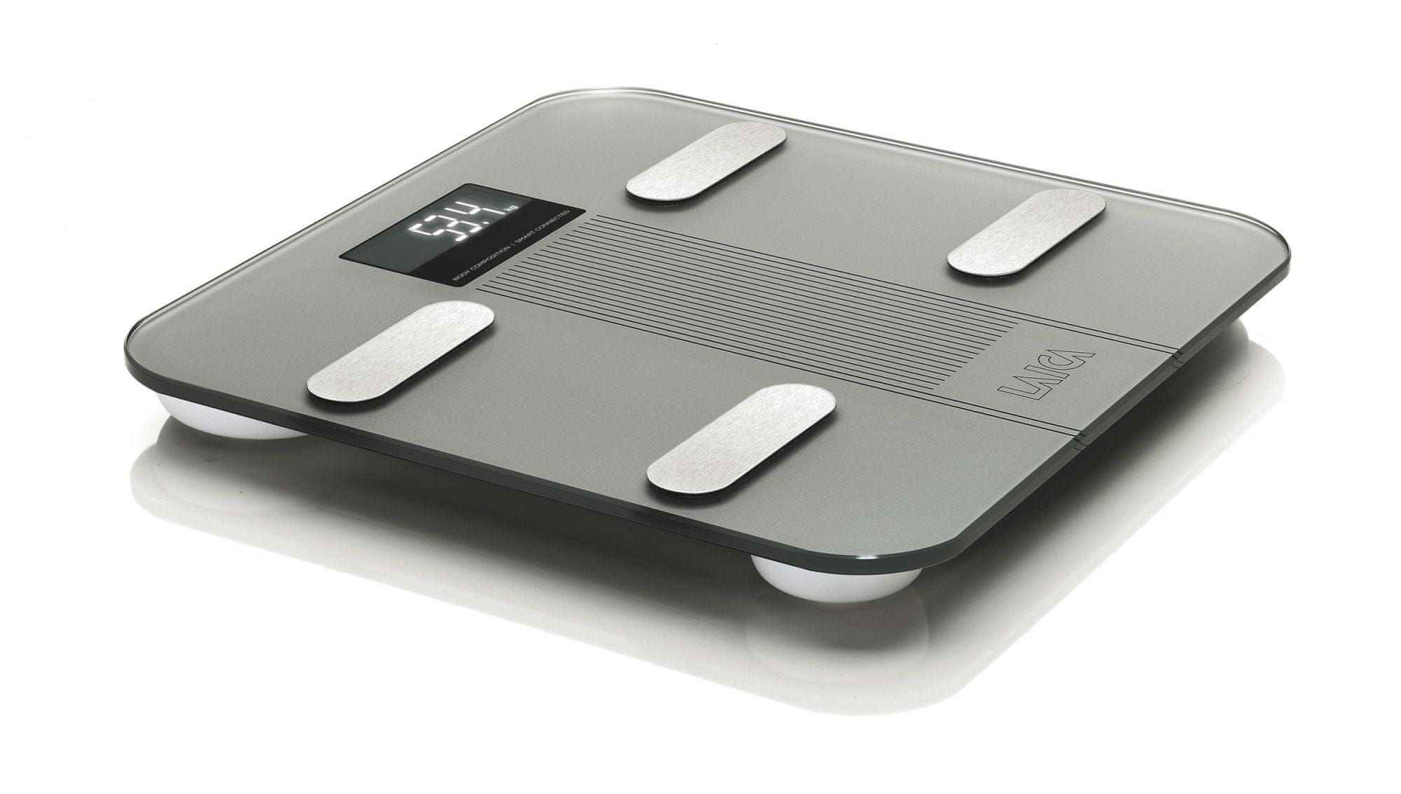 Uz tanak i elegantan dizajn, naprednu osobnu vagu talijanske marke Laica također odlikuju razne mogućnosti uporabe. Brza povezanost između vage i vašeg pametnog telefona putem Bluetootha omogućuje vam trenutno praćenje postignuća. Pametna elektronička osobna vaga namijenjena je svima koji žele detaljno pratiti svoj tjelesni sastav. Naime, osim tjelesne težine, vaga omogućuje i mjerenje tjelesne masti, postotka vode, mišićne mase, koštane mase, indeksa tjelesne mase BMI i BMR ( bazalna stopa metabolizma – osnovna brzina metabolizma – broj kalorija koje vaše tijelo treba da bi postiglo svoje osnovne (bazalne) funkcije održavanja života). Svi se parametri dobivaju samo jednim vaganjem.