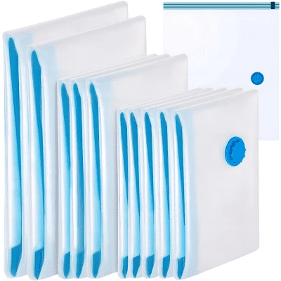 Ruhhy set zip vakum vrećica za odjeću. Budući da je volumen smanjen za 80%, idealni su za selidbu, odlaganje sezonske odjeće ili uštedu prostora tijekom putovanja. U setu se nalazi 10 vrećica različitih veličina.