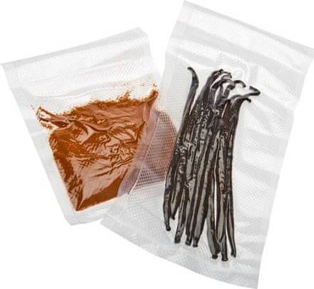 Vakuumske vrećice 12 × 55 cm, 30 kom DEBLJINA FOLIJE: – 100 ?m (glatki vanjski sloj bez rebrastog lima) – 130 ?m (teksturirani, unutarnji rebrasti sloj) Materijal: Vanjski sloj POLIAMIDA PA.