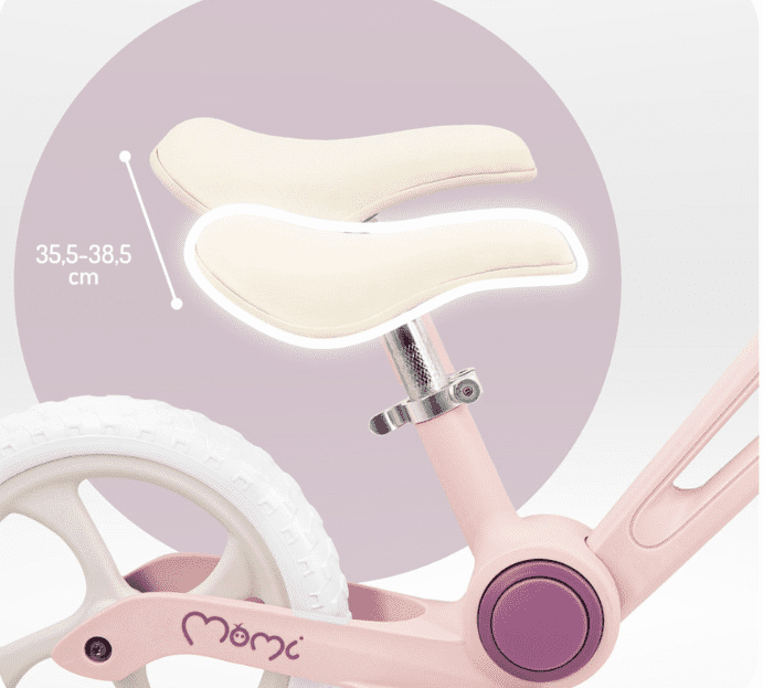 Dječji romobil Momi Noru ima mogućnost brze promjene visine sjedala bez upotrebe alata. Zahvaljujući tome, podešavanje vozila visini djeteta izuzetno je jednostavno i brzo, što se odražava na udobnosti svakodnevne upotrebe i dugotrajnog korištenja bicikla. Okvir bicikla izrađen je od najlona, što ga čini laganim i prikladnim za djecu od 2 godine i do 25 kg.