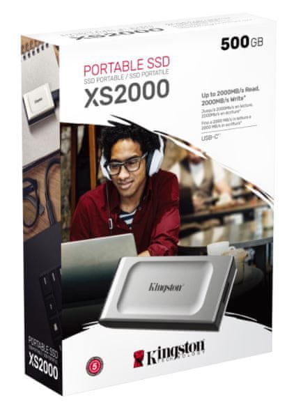 Kingston SSD, 500GB XS2000, USB C 3.2, 2000/2000MB/s, prijenosni