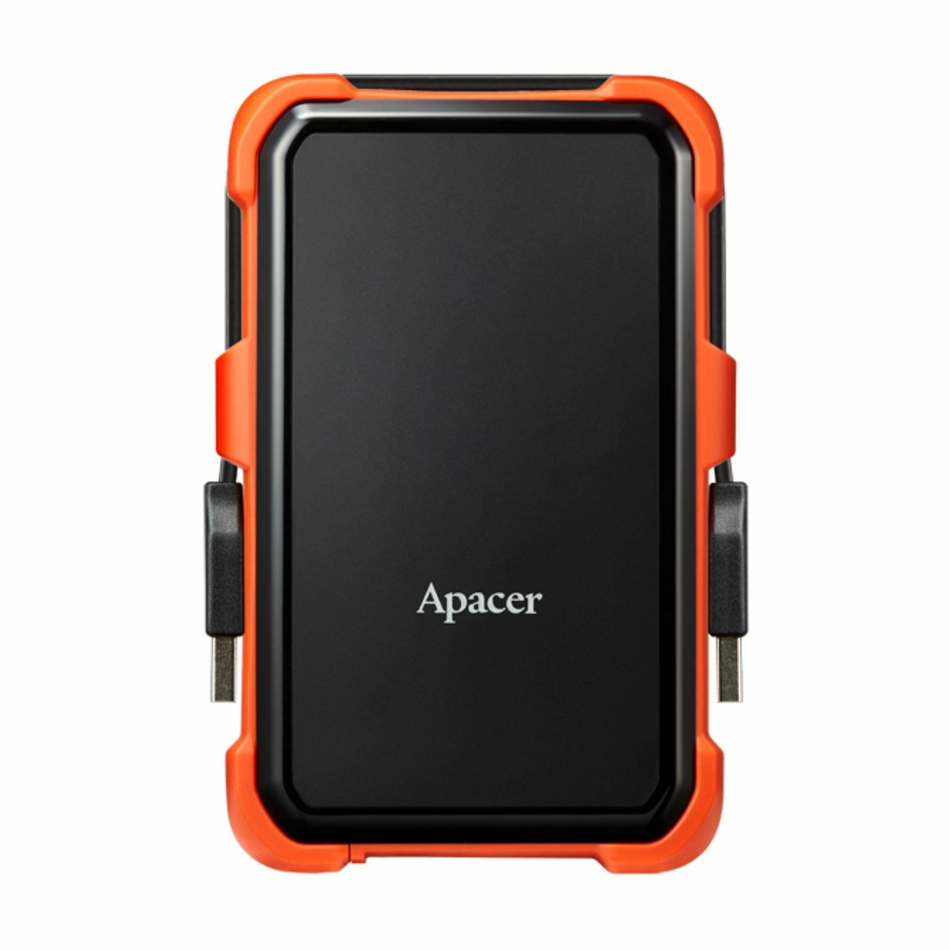 Apacer vanjski tvrdi disk s gumiranim okvirom, otporan na udarce i padove (do visine 1.22m). Okvir je dizajniran tako da omogućava prenošenje priključnog kabla za tvrdi disk kada nije u upotrebi.