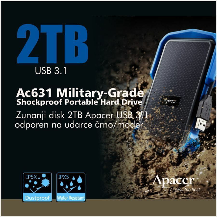 Apacer vanjski tvrdi disk 2TB AC631 USB 3.1 otporan na udarce crno/plavi