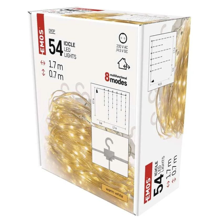 Emos lanac dužine 1,7 m u obliku led svijeća za božićnu rasvjetu pogodan je za vanjsku i unutarnju upotrebu.Posjeduje 54 LED lampice koje svijetle u ugodnoj toplo bijeloj boji. Nudi osam funkcija sjaja. Ovom rasvjetom možete dočarati ugodan blagdanski ugođaj u svom domu, ili ukrasiti vanjske površine.