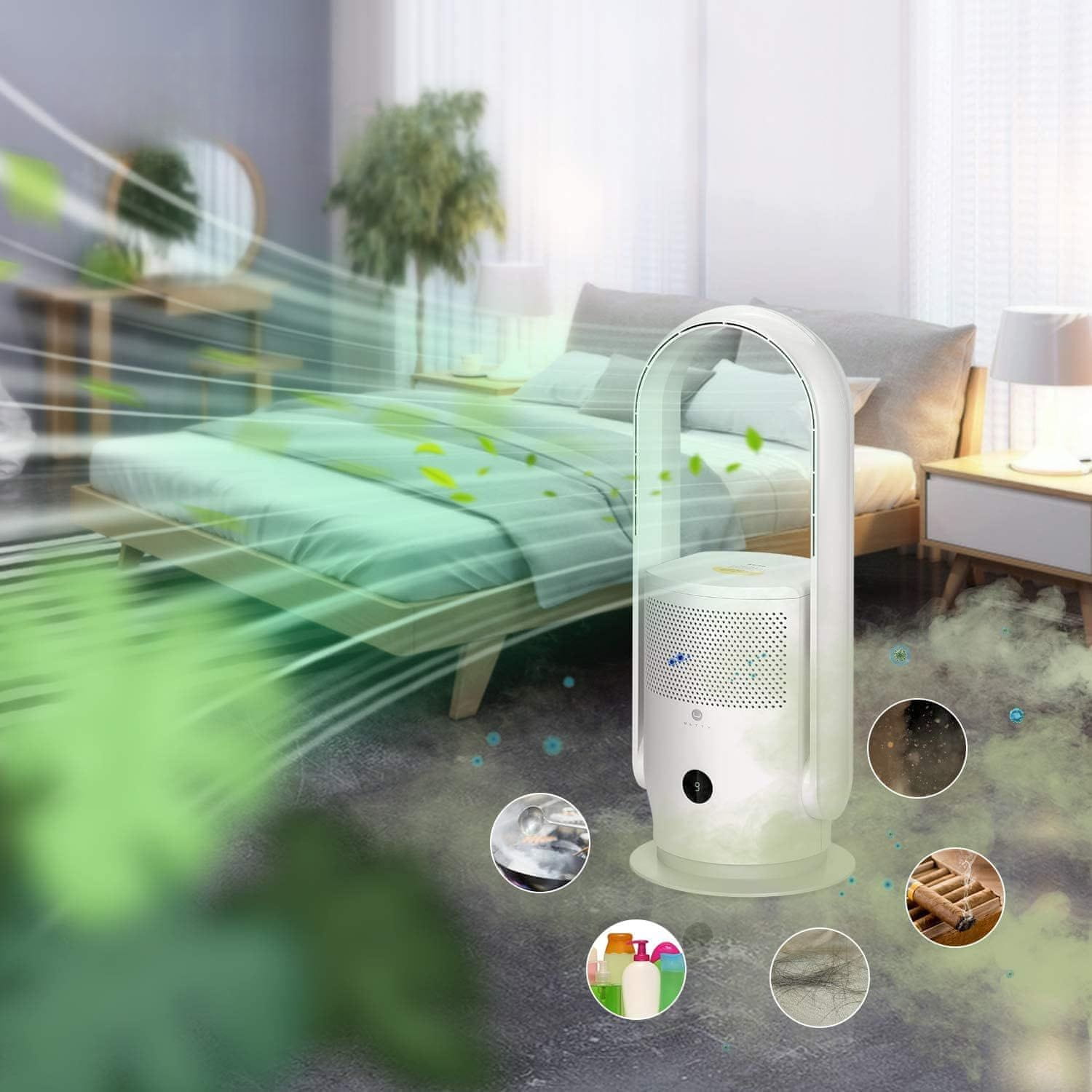 Bezlopatni toranjski ventilator ULTTY s funkcijom pročišćavanja zraka stvara ugodno i zdravo okruženje u vašem domu. Opremljen s 3 načina rada i elegantnim bijelim dizajnom, savršeno se uklapa u svaki interijer. HEPA13 pročišćivač zraka hvata 99,99% čestica zagađivača, osiguravajući čist zrak. Ovaj uređaj kombinira učinkovito hlađenje s naprednim pročišćavanjem zraka, nudeći sveobuhvatno rješenje za poboljšanje kvalitete zraka i udobnosti u vašem životnom prostoru. Njegova visina od 80 cm i mogućnost pokrivanja površine do 20 četvornih metara čine ga prikladnim za različite prostorije. Kontrola je jednostavna putem daljinskog upravljača ili dodirnog panela, što omogućuje fleksibilno korištenje i prilagodbu postavki vašim potrebama. Posebna konstrukcija osigurava nizak nivo buke, što doprinosi mirnijem okruženju, posebno tijekom noćnog rada.