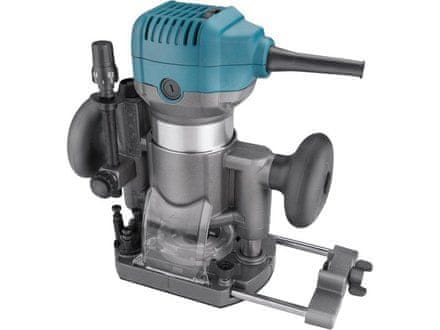 Frézka je určena k frézování hran, profilů, otvorů do dřeva s různými tvary v závislosti na tvaru použité frézy. Frézka může pracovat s frézami se stopkou 6 a 8mm. Srdcem frézky je silný 710W motor s regulací otáček v rozsahu 13000–33000/min, který umožňuje přizpůsobit rychlost typu materiálu. Dále je vybavena elektronickou kontrolou otáček, která jí umožňuje mít konstantní otáčky i při zatížení a funkcí „soft start“ zajišťující hladký start bez nárazů. Pro přesnou práci je zanořovací základna vybavena hloubkovou zarážkou s možností přesného posunu v řádu desetin milimetru. Při práci s tvrdým dřevem můžete využít revolverovou zarážku pomocí, které si rozdělíte frézovanou hloubku do několika vrstev a postupně je budete odebírat. Balení obsahuje tři různé základny: zanořovací, jednoruční a základnu s rukojetí. Dále lze dokoupit předsazenou základnu vhodnou pro práce u stěn. Frézka lze snadno vyjmout ze základny a vložit do jiné základny v závislosti na prováděné práci. Tato modularita výrazně usnadňuje a zrychluje práci.