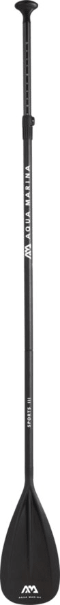 Veslo Aqua Marina Sports III je odvojivo i podesivo (od 175 cm do 220 cm), tako da možete u potpunosti prilagoditi duljinu vesla svojoj visini. Veslo je izrađeno od aluminija, lagano je i tako pogodno za početnike kao i rekreativce. Stup je izrađen od aluminija debljine 1,2 mm, a oštrica je od polipropilena i stakloplastike. Ergonomska ručka u obliku slova T omogućuje sigurno i udobno držanje.