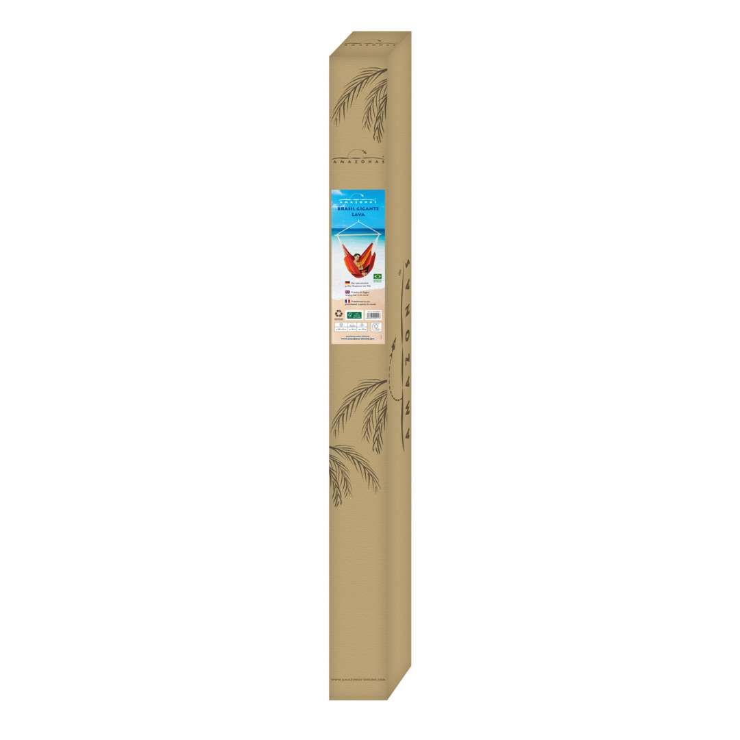 AMAZONAS Brasil Gigante je XXXL king-size viseća stolica — zbog svojih izdašnih dimenzija gotovo više nalikuje visećoj mreži nego klasičnoj stolici. Dizajnirana je kao obiteljska viseća stolica s puno prostora za sjedenje, naslanjanje ili potpuno opušteno ležanje. Ručno je izrađena u Brazilu kao tradicionalan i održiv proizvod, nastao pod pravednim radnim uvjetima.