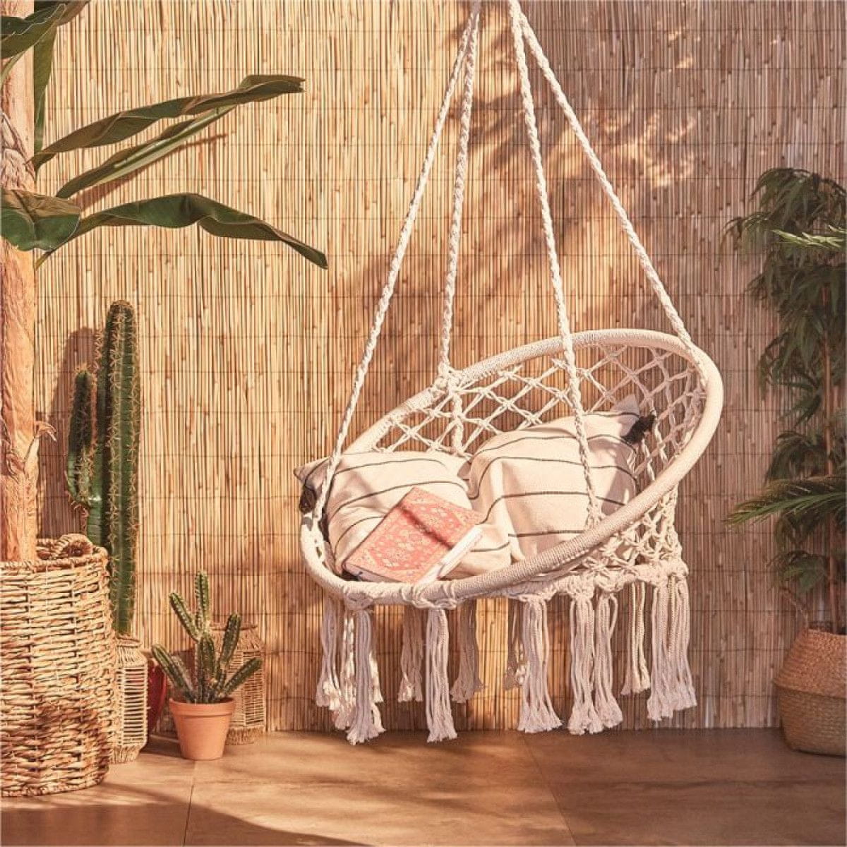 Pletena viseća stolica nudi vam oblik čahure u koji se možete sklupčati i nježno ljuljati i tako se umiriti i uspavati.