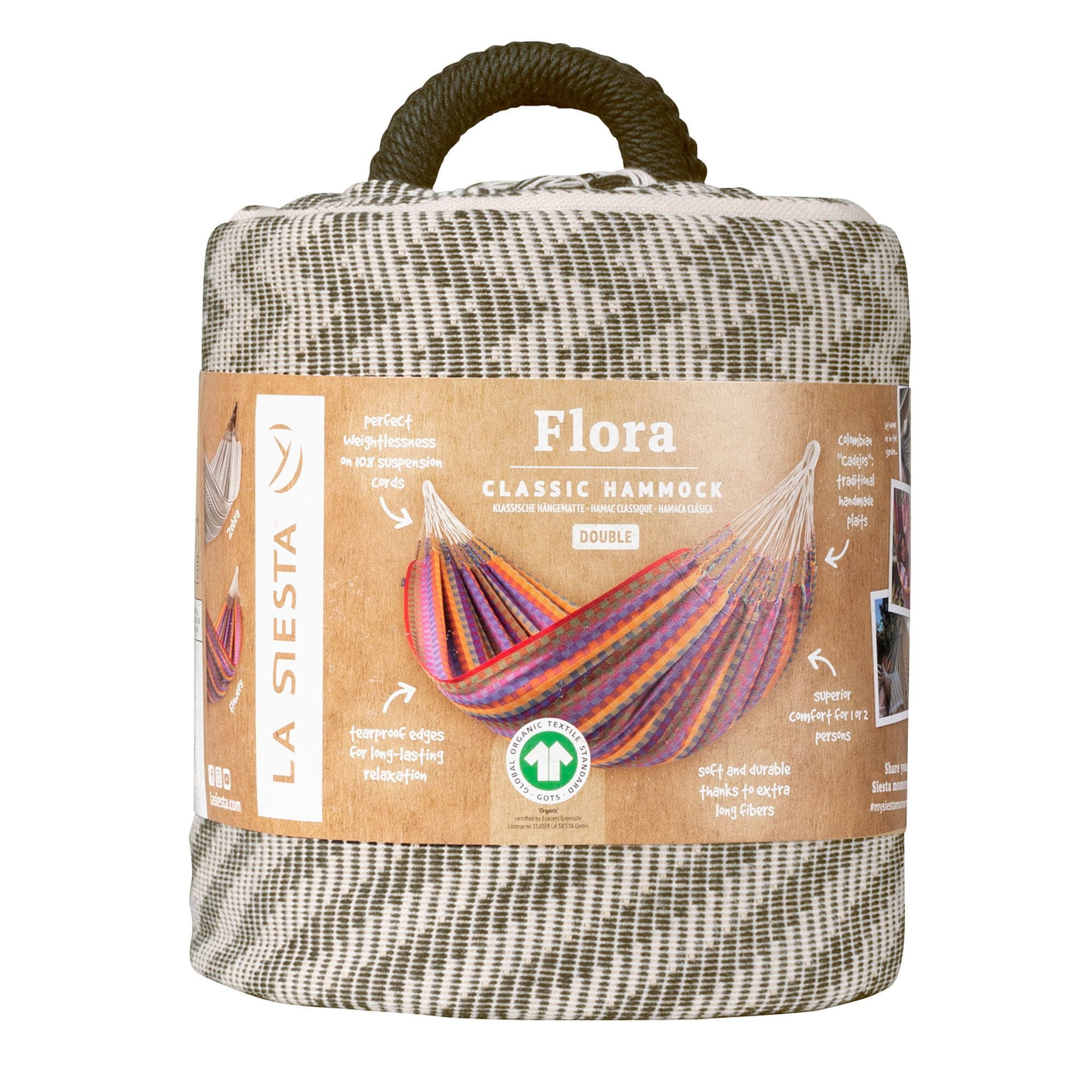 Viseća mreža La Siesta Flora Double (organski pamuk) – GOTS, do 160 kg 🌺🇨🇴🌿