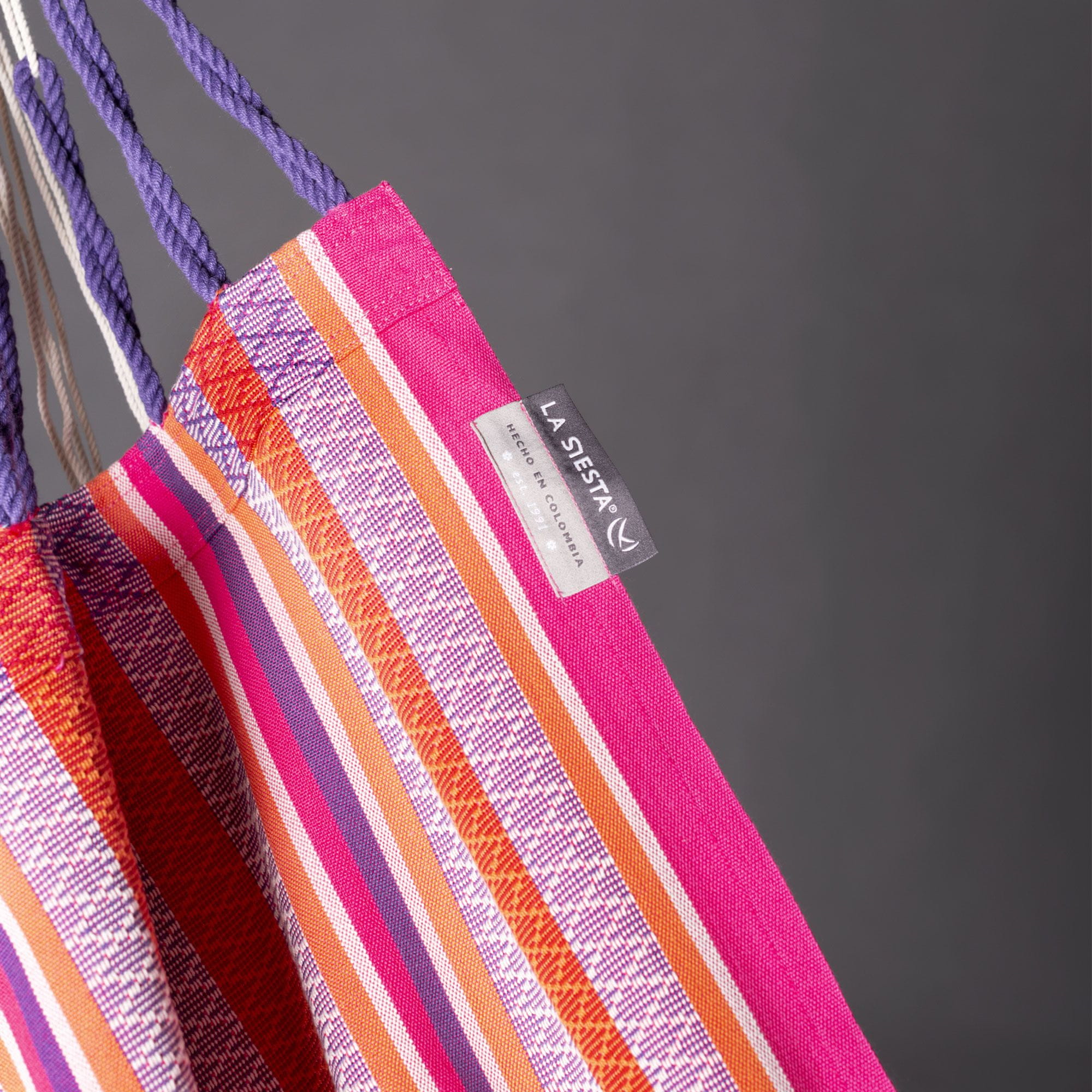 Izrađena je od 100% organskog pamuka s ekstra dugim vlaknima i ručno proizvedena u Kolumbiji, što osigurava mekoću, izdržljivost i dugotrajan lijep izgled. FSC® bambusova razuporna letvica daje stabilnost, a integrirani 360° okretni element pomaže spriječiti uvijanje užadi. S duljinom tkanine od 180 cm, ovo je viseća stolica stvorena i za sjedenje i za ugodno izležavanje.
