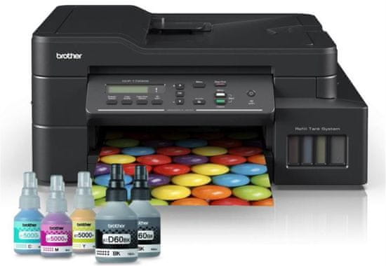 Brother DCP-T720DW robustan je i isplativ višenamjenski uređaj sa značajkama ispisa, skeniranja i kopiranja. Osim brzog i visokokvalitetnog ispisa, odlikuje ga jednostavan sustav za ponovno punjenje spremnika, jer jednostavno umetnete bocu u boji u odgovarajući spremnik i pustite je da se napuni. Kad je boca prazna, izvadite je i provjerite je li spremnik zatvoren.