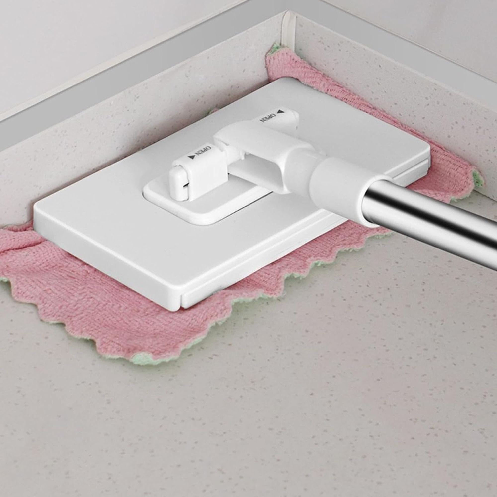 Kopča sigurno drži različite materijale za čišćenje poput ručnika za lice, papirnatih ručnika ili krpa. Jednostavno pričvrstite i otpustite jednim pritiskom – bez prljanja ruku.