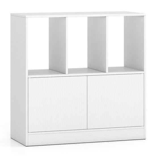 Svestrana polica za knjige s 3 otvorene kocke i ormarićem s vratima omogućuje pohranu knjiga, dekoracija i drugih predmeta, idealna za uredan i organiziran prostor.