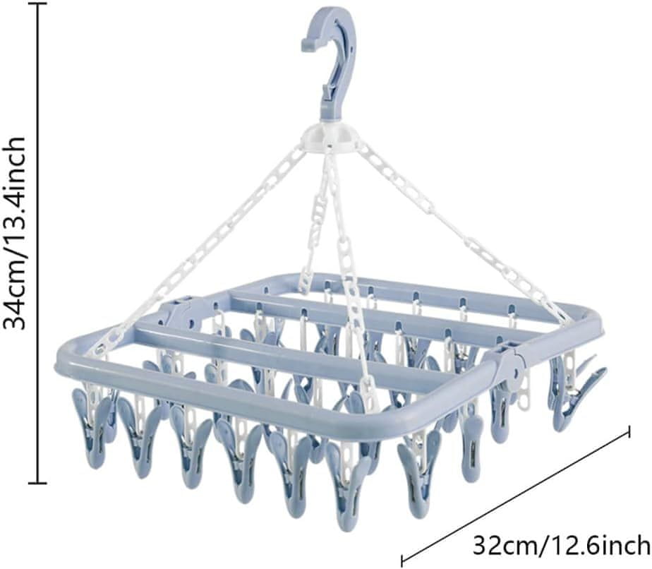 Nikcorp Sklopiva vješalica za rublje s 32 kvačice, rotirajuća 360°, za sušenje čarapa, donjeg rublja i odjeće, plava