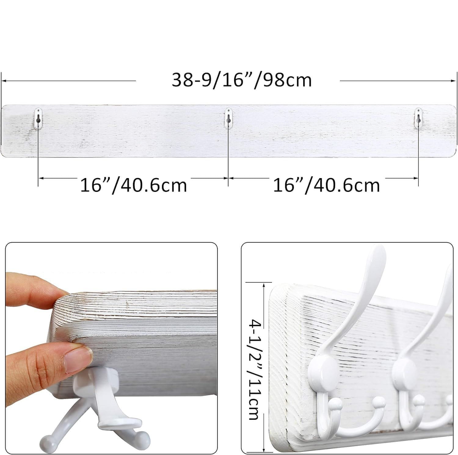 Stilska zidna vješalica u rustikalnom vintage stilu praktično je rješenje za predsoblje, garderobu ili kupaonicu. Izrađena od punog drva u elegantnoj bijeloj boji, opremljena s 10 čvrstih kuka, omogućuje praktično pohranjivanje kaputa, jakni, kapa, šalova ili torbi. Duljina od 98 cm osigurava veliki kapacitet, a klasičan dizajn daje interijeru jedinstven karakter. U setu se nalaze 2 komada vješalica, spremnih za montažu na zid.