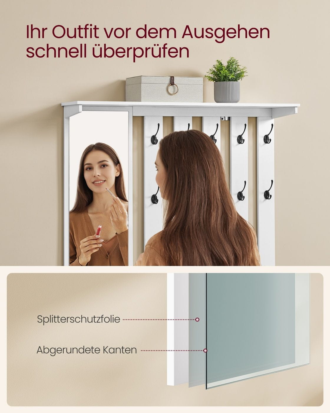 Songmics Set vješalica za hodnik i klupa za cipele s ogledalom 102x31x52 cm bijela